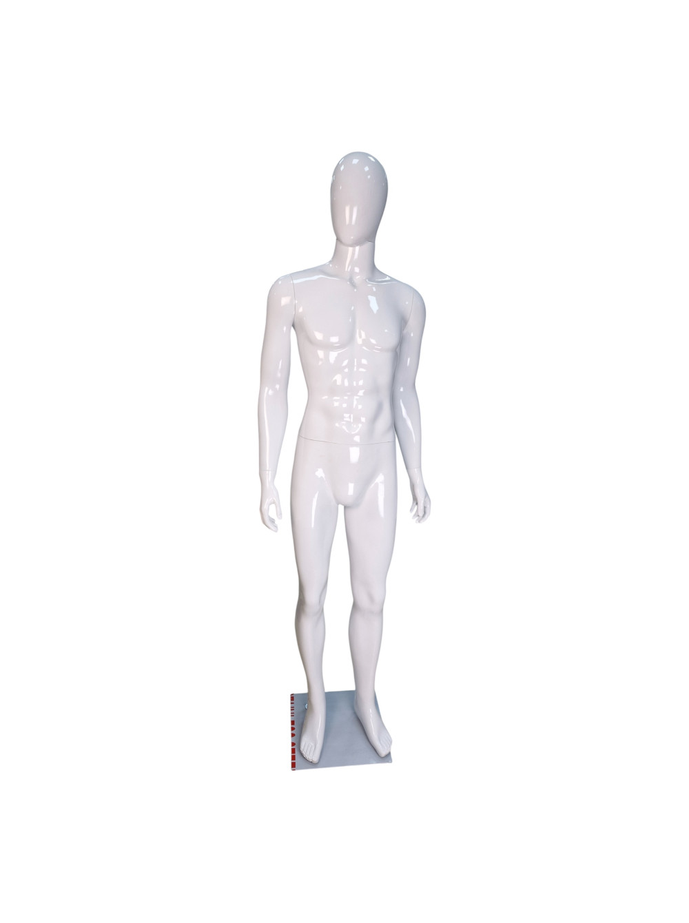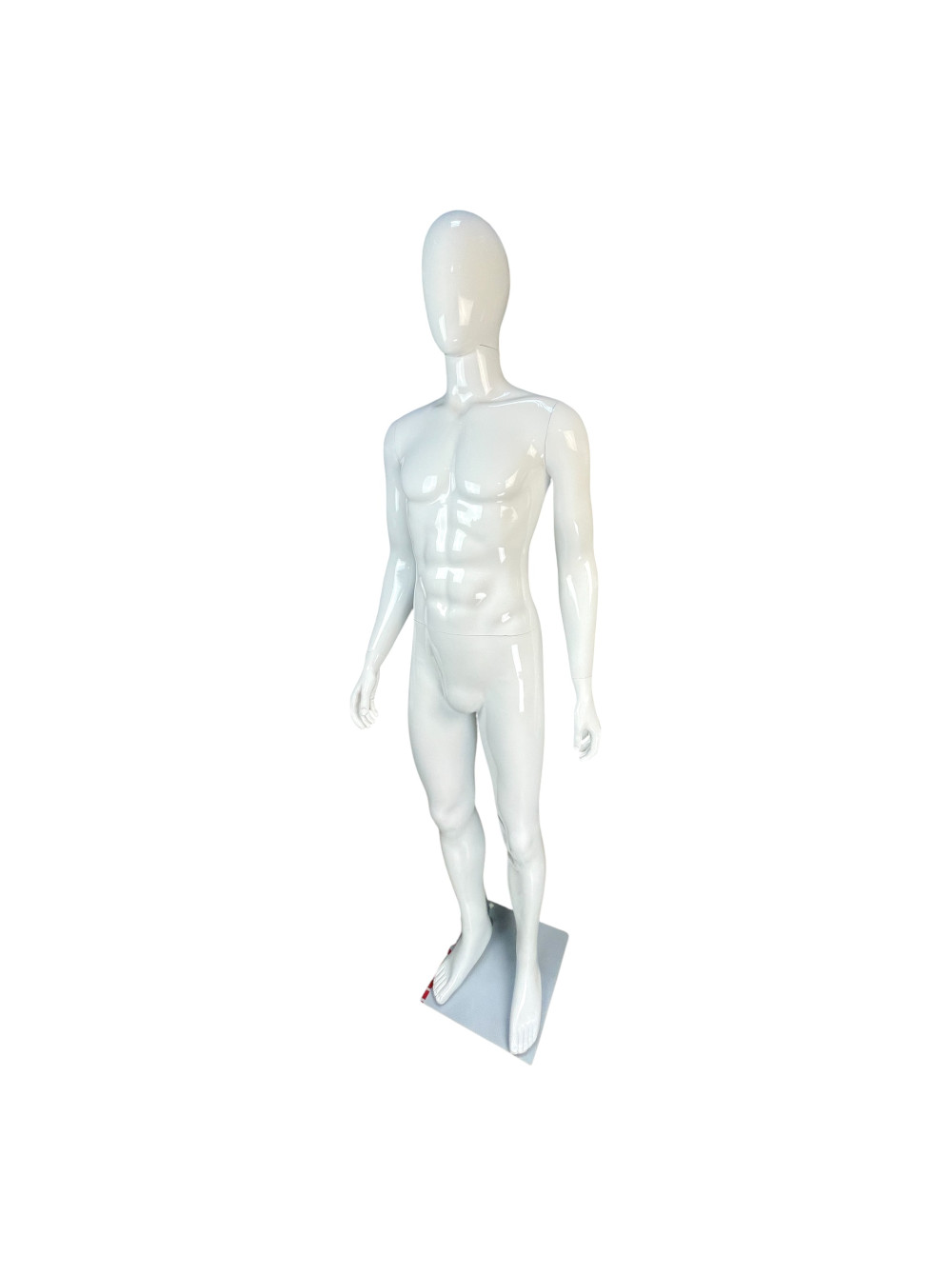 Манекен чоловічий глянсовий білий безликий на металевій підставці.